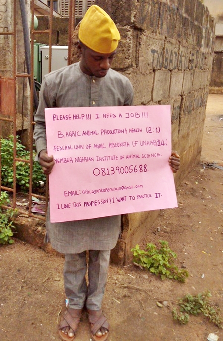 An yet another unemployed young graduate has taken to the streets with a placard begging for a job and hoping that someone will see and offer him one.